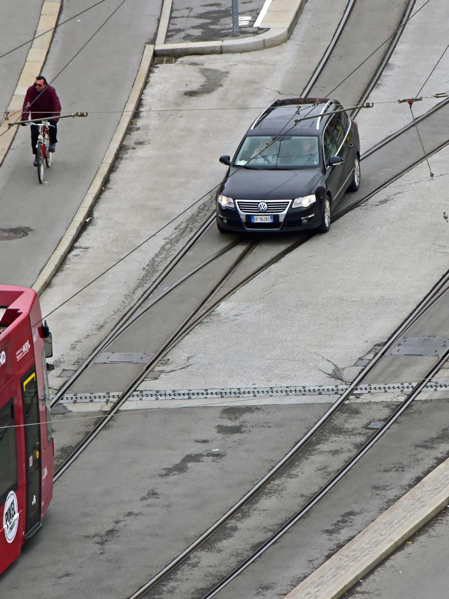 naja das passiert eigentlich reglmäßig dass hier jemand falsch abbiegt... und in der zwischenzeit würd ich nicht mehr behaupten, das liegt an der ungewohnten verkehrssituation.. aber die einfahrt in den leipziger platz verleitet zum gradaus weiterfahren von der amraserstraße anstatt zum abbiegen.. was man eventuell machen könnte sind LEDs auf bodenniveau zwischen den schienen die einfach eine optische barriere bilden... hab ich auch schon vor zebrastreifen gesehen... und zwischen den gleisen wird hoffentlich kein busrad entlang fahren...
