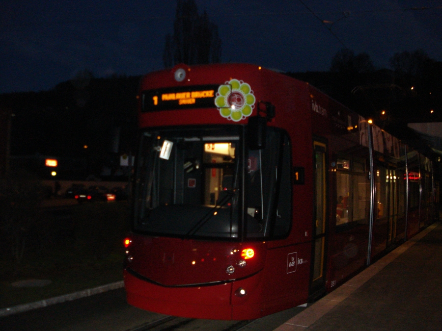 Wieso ist Wagen 351 eigentlich Mo-Fr erst ab 13:00 Uhr und am Wochenende gar nicht im Einsatz? Wollen die IVB den Innsbruckern gar nicht ihren neuen Stolz präsentieren? Oder traut man dem Flexity Outlook keinen allzu harten Einsatz zu?