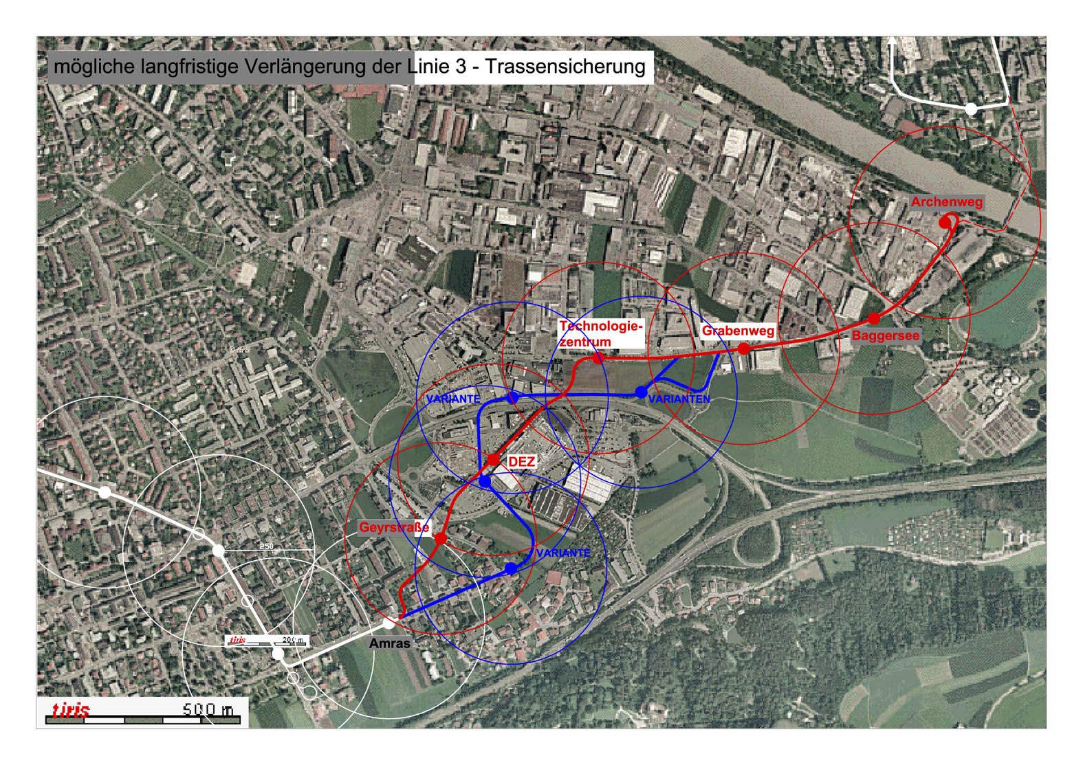 - Einen groben Ausblick auf einen späteren Ausbau, der, falls verkehrlich überhaupt sinnvoll, auch den Rest der Südringtram als weiteren Lückenschluss (zwischen Westbahnhof und Höttinger Au) beinhaltet