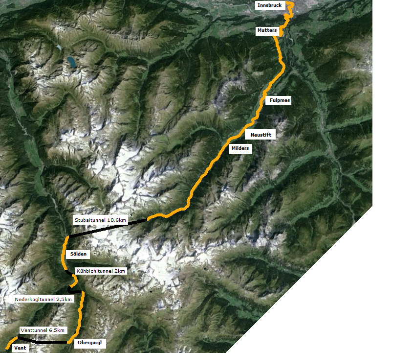 In einer letzten Verlängerung könnte man schließlich Hochgurgl, Obergurgl und durch einen 6 Kilometer langen Tunnel auch noch Vent erschließen. Dieses Bergdorf könnte zum ersten autofreien Dorf Österreichs werden. Obergurgl wäre mit 1907 Metern auch noch der höchste Bahnhof Österreichs.