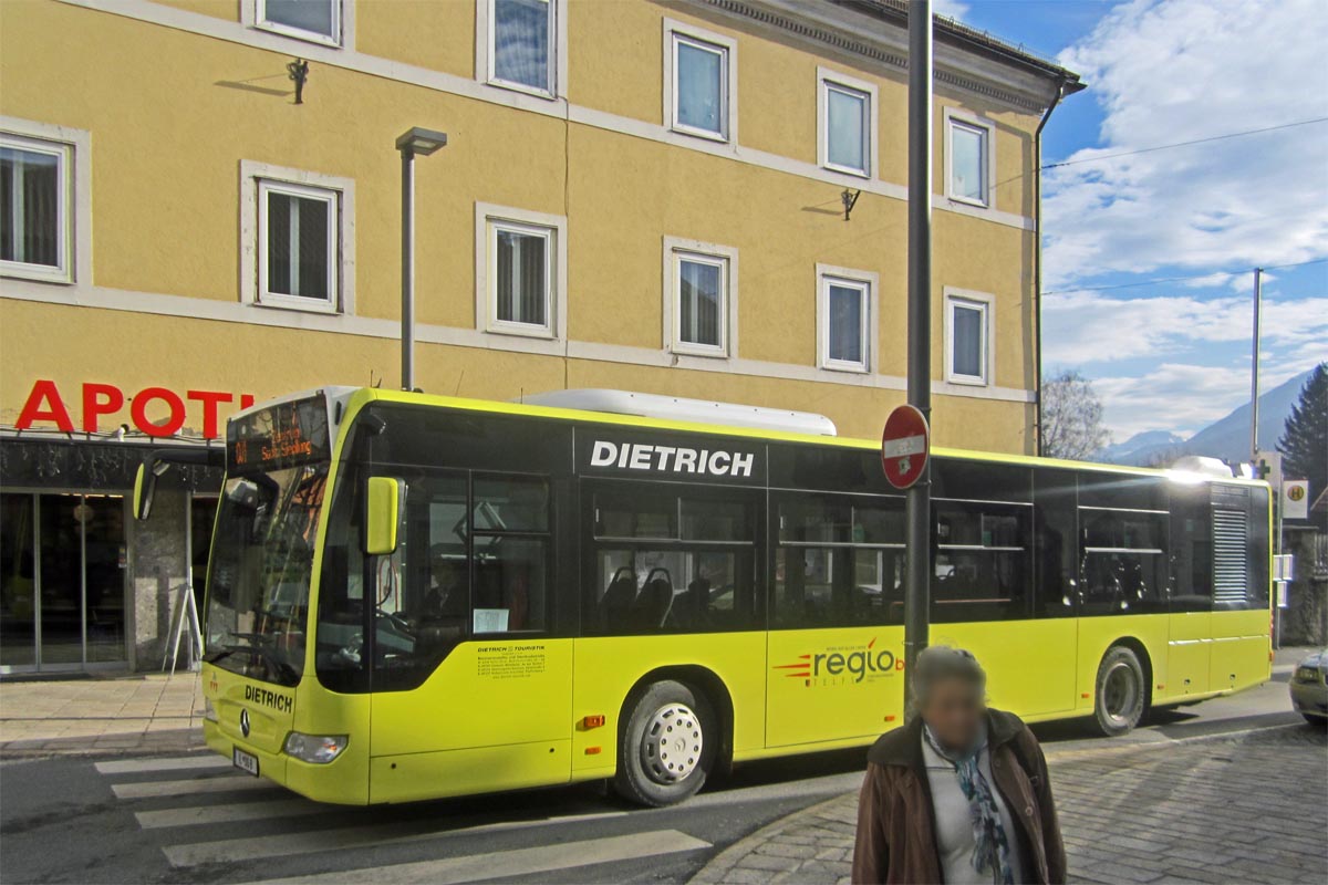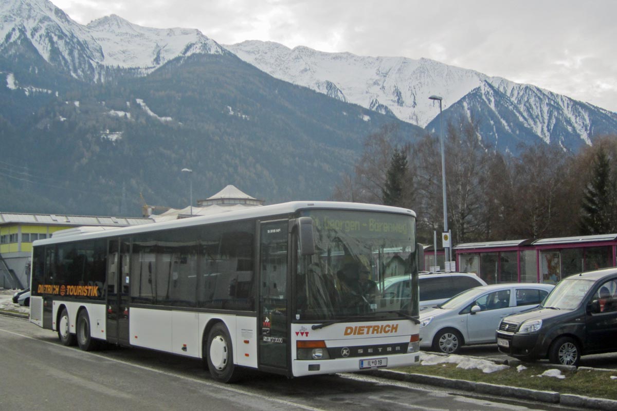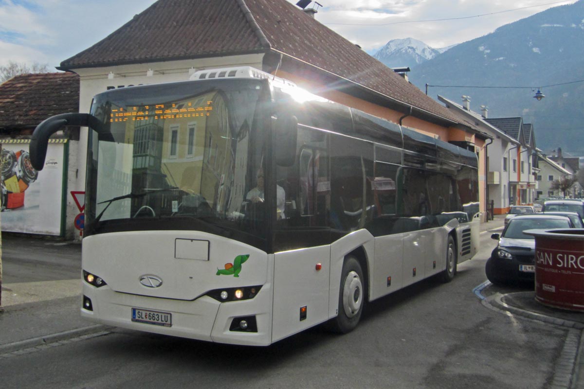 und das muss eine lange Linie sein, der Bus nach Ötztal in Telfs mit einem aus "Salzburg" kommenden Bus (SL 663LU - Solaris). . .