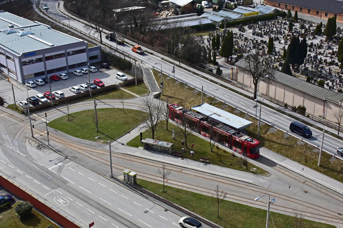 Ein heute am späten Nachmittag entstandener Nachschuss auf den Tw76 in der Hst. Brunecker Strasse (Linie 1)