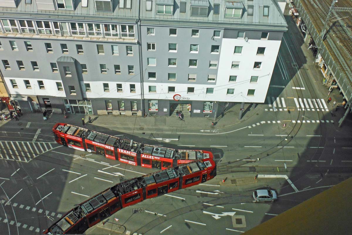 Es zeigt auch eine Situation, die so einfach nicht sein dürfte: es dürften sich eigentlich zu keinem Zeitpunkt an dieser Haltestelle Autos neben der Tram befinden.