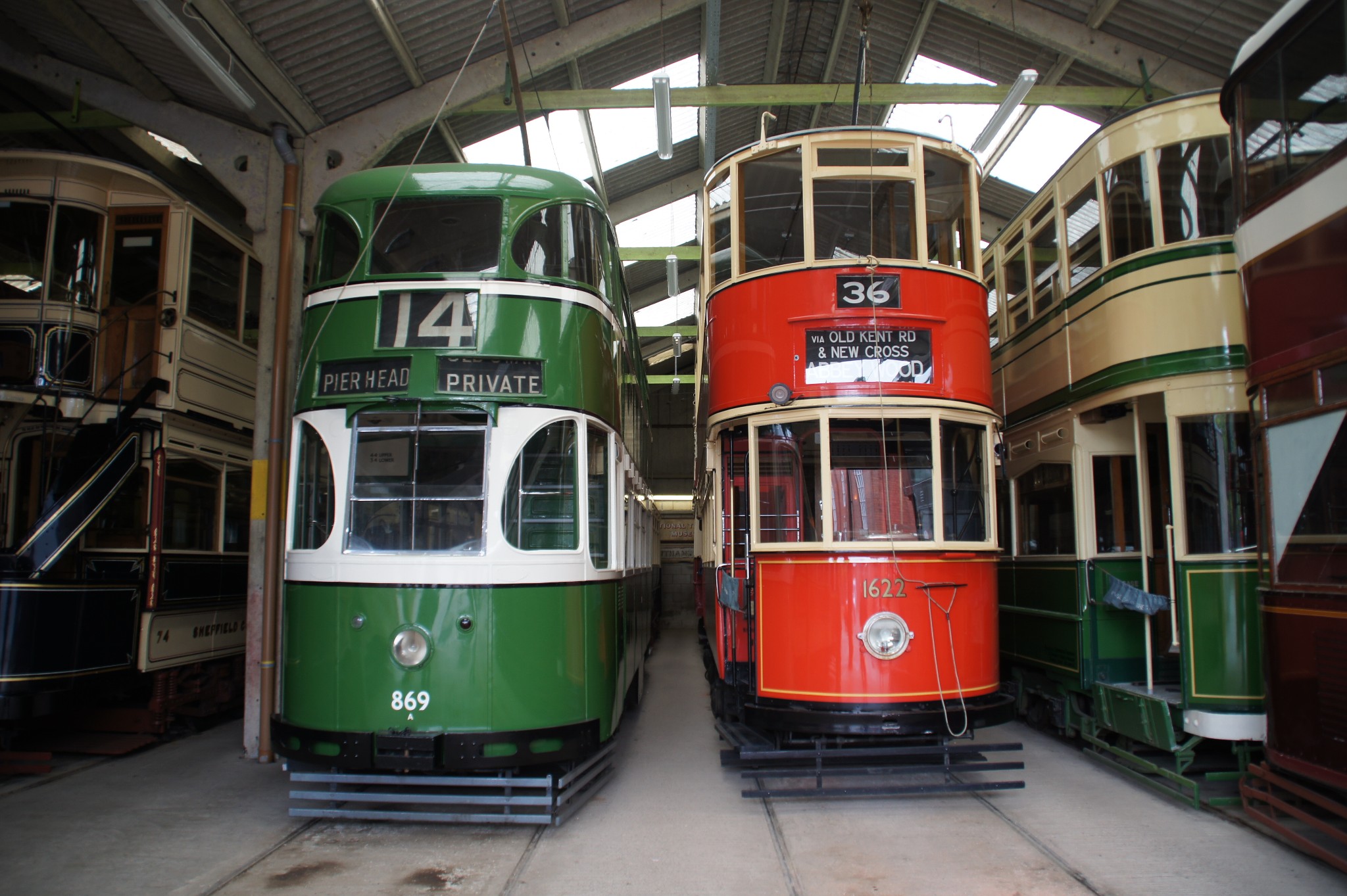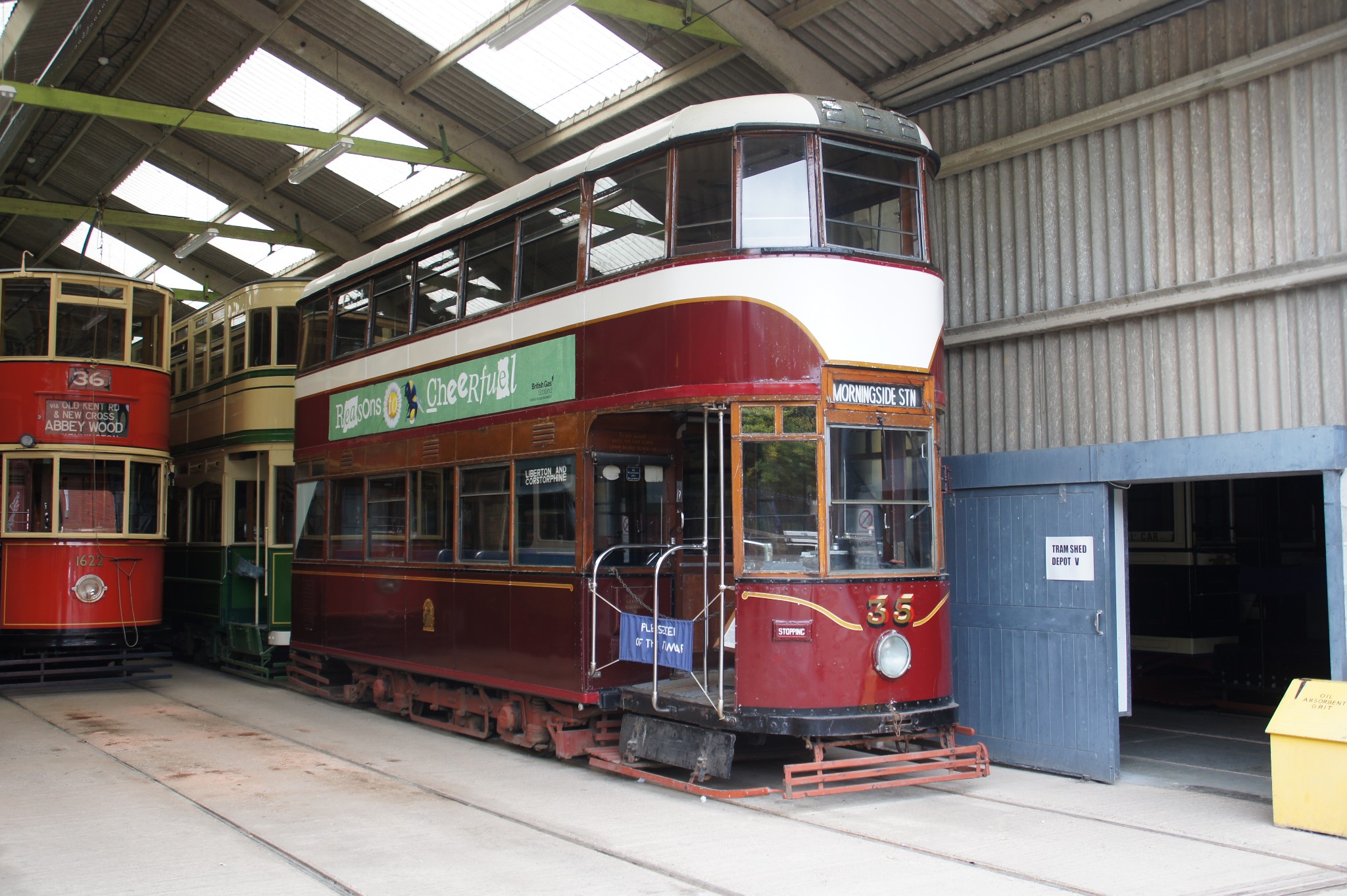 6. bis 8. In der Museumsstadt Tw 16 Bj. 1900 ex Sunderland, ungewohnt für Mitteleuropäer die Beiwagen, die man in England einfach aufs Dach gesetzt hat wink