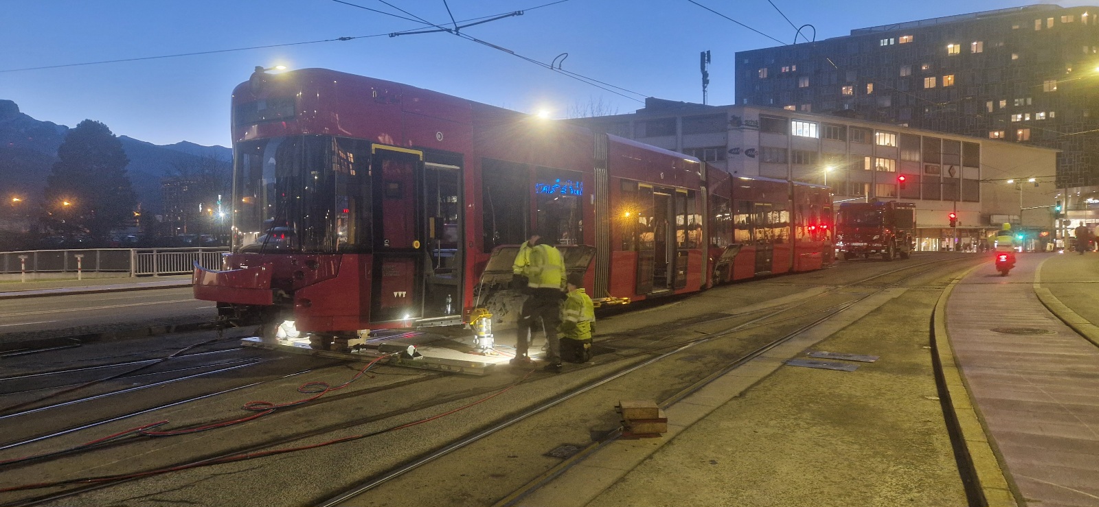 Linie 5: Bahnen im Osten kurzgeführt von Roßbachstraße bis Rum Bahnhof, SEV 5SE mit 3-4 Bussen pro Kurs von Sillpark bis Roßbachstraße, Bahnen im Westen kurzgeführt von Sillpark bis Technik West.