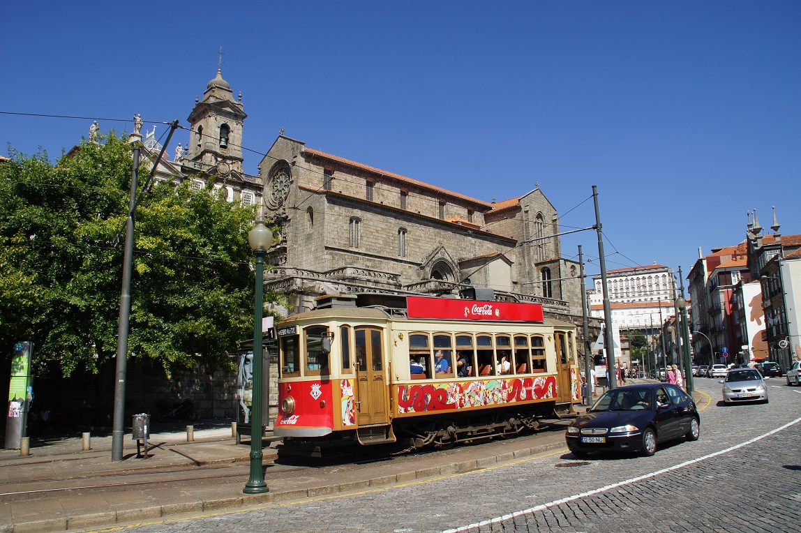 4. Schließlich erreichten wir die Großstadt Porto, in dem die alte Straßenbahn nieg ganz stillgelegt wurde, sondern ab den 1990er-Jahren zunächst auf eine Reststrecke reduziert wurde und nunmehr zu reinen, im 30-Minuten-Takt verkehrenden Touristenlinien umgebaut und in der Altstadt sogar etwas erweitert wurde. Es verkehren die Museumslinien 1, 18 und 22. Das örtliche Straßenbahnmuseum im Depot Massarelos war leider wegen Sanierung geschlossen und soll laut Aussage einer Mitarbeiterin erst wieder im Laufe des nächsten Sommers öffnen.